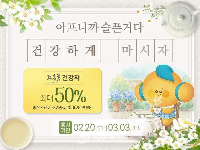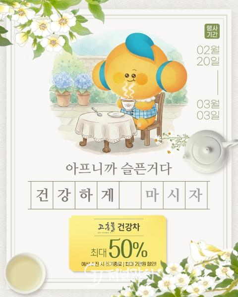 이번 기획전은 큰 일교차와 미세먼지 등으로 건강 관리가 중요한 시기를 맞아, 누구나 일상에서 간편하게 섭취할 수 있는 건강 음료를 중심으로 마련됐다. 행사 기간 각종 전통차와 건강차를 최대 50% 할인된 가격에 선보인다.