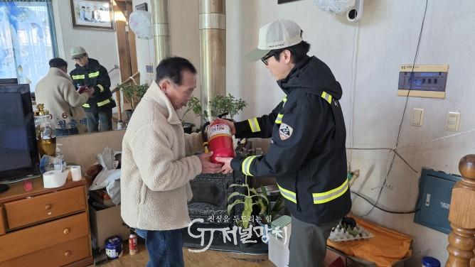 또한 화목보일러 사용 가옥 1인 1가구를 방문해 손쉽게 사용할 수 있는 소화기 사용법과 화목보일러 사용 시 주의사항에 대해 교육하고 산불이 발생하면 신속한 신고를 당부했다.