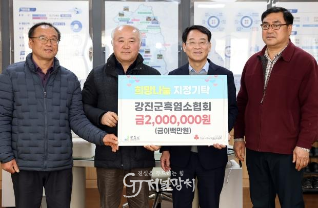 ![]() 강진원 군수와 강진군흑염소협회가 희망나눔 지정기탁금 전달 후 기념촬영을 하고 있다. |