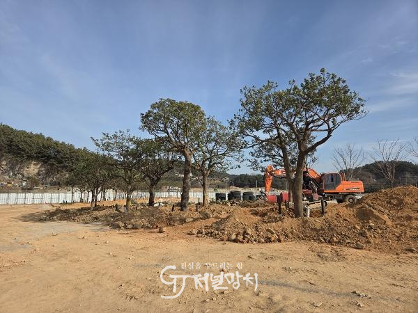 ![]() 박람회장 내 이식된 대형수목 공사 현장 |