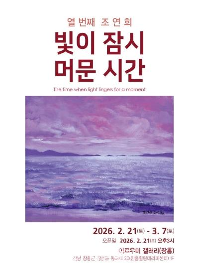 은은한 차 한 잔과 책, 그리고 바다의 잔상이 어우러진 공간에서 작가의 작품 세계를 더욱 깊이 있게 음미할 수 있을 것으로 보인다. 전시는 장흥힐링테라피센터 1층에 위치한 이로우미 갤러리에서 누구나 무료로 관람할 수 있다.