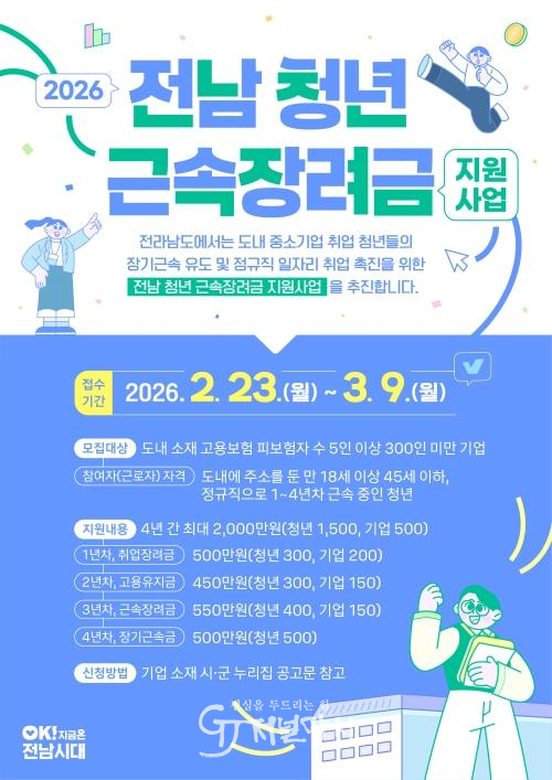 청년 근속장려금 지원사업은 전남도가 2016년부터 추진한 대표 청년일자리 사업이다. 지역 중소기업에 취업한 청년이 안정적으로 장기근속하도록 지원해 기업의 인력 유출을 줄이고, 청년의 지역 정착을 유도하기 위한 것이다.