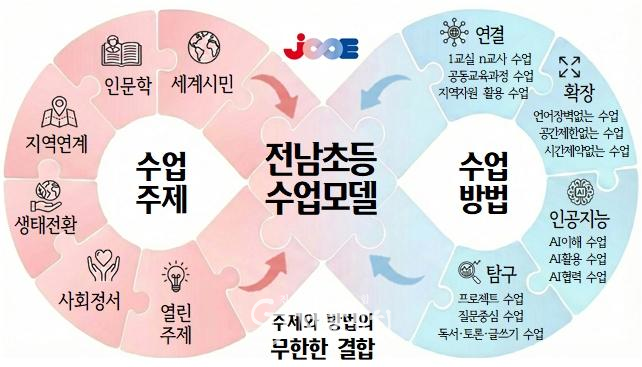특히, ‘2024 대한민국 글로컬 미래교육 박람회’ 글로컬 미래교실에서 운영한 59시간의 수업과 2025학년도에 운영한 133개 2030교실의 실제 수업 사례를 분석‧정리해 현장 활용도를 높였다. 전남교육이 지향하는 ‘공생하는 글로컬 전남교육’의 방향을 반영한 ‘전남 초등 수업모델’을 개발해, 지역·학교·학급·학생의 여건에 따라 수업 주제와 방법을 유연하게 조합할 수 있도록 했다. 이를 통해 교사들이 각자의 교육철학을 담은 수업브랜드를 2030교실에서 구현할 수 있을 것으로 기대된다.