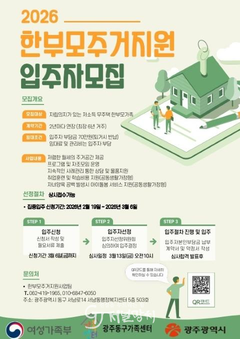 입주 상담 및 신청은 광주동구가족센터(062-419-19650, 010-6847-6050)로 하면 된다. 홍보물에 안내된 정보무늬(QR코드)를 통해서도 자세한 내용을 확인할 수 있다.