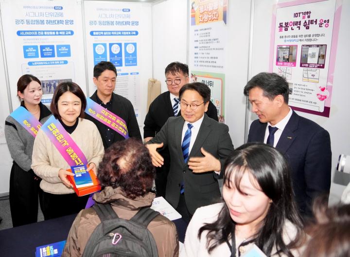 행사장에는 13개 기관이 참여한 홍보부스도 운영됐다. 광주 5개 자치구를 비롯해 국민건강보험공단, 국민연금공단 등 전문기관과 광주라이즈(RISE)센터·대학라이즈사업단이 참여해 통합돌봄 우수사례와 협력사업을 전시했다.