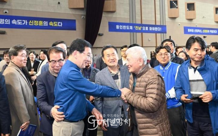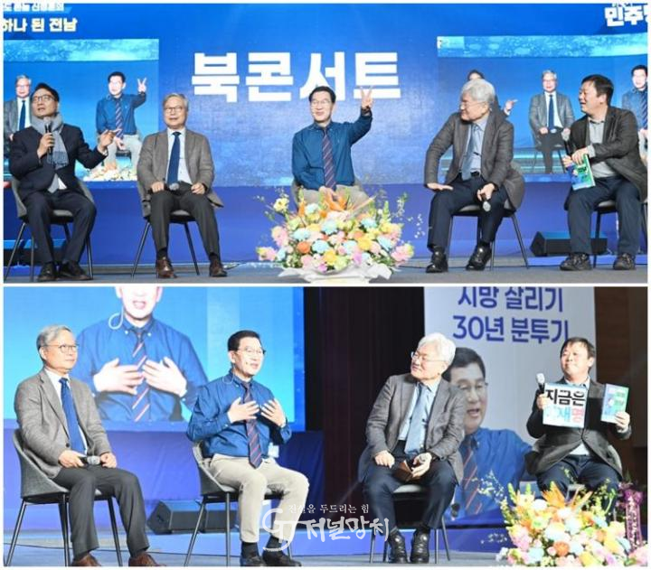 김영록 도지사는 “오늘 출판기념회는 행정통합을 앞둔 출정식 같다.”며 “한전공대 설립과 혁신도시 유치 과정에서 신 위원장의 역할이 매우 컸다. 행정통합, 끝까지 함께 완수하겠다”고 힘을 실었다.