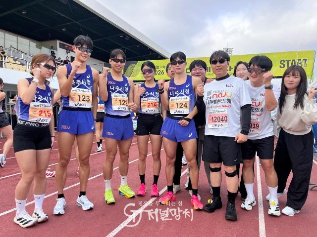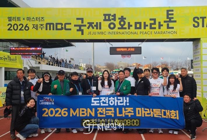 지난 2월 21일 열린 ‘2026 제주MBC국제평화마라톤대회’에서 나주시 육상선수단과 체육진흥과 직원들은 ‘2026 나주방문의 해’와 ‘2026 전국 나주 마라톤대회’를 홍보하는 문구와 QR코드가 담긴 티셔츠를 착용하고 10km 코스를 완주하며 전국 러너들을 대상으로 현장 홍보를 펼쳤다.