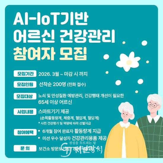 군 보건소 관계자는 “디지털 기술을 활용한 상시 건강관리 체계를 통해 어르신들의 자가 건강관리 능력을 높이고, 만성질환 악화를 예방하는 데 도움이 될 것으로 기대한다. 지역 어르신들의 많은 관심과 참여를 바란다.”고 했다.