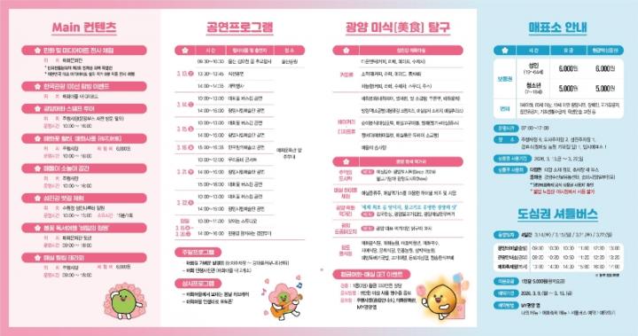 광양시 관계자는 “이번 축제는 입장부터 주차, 셔틀버스까지 전 과정에서 방문객 안전과 편의를 최우선으로 고려해 준비하고 있다.”며 “무료 셔틀과 도심권 셔틀 운영을 통해 교통 혼잡을 줄이고 누구나 편리하게 찾을 수 있는 축제 환경을 조성하겠다.”고 말했다.