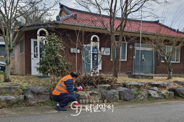 ![]() 나주시가 오는 3월 20일까지 해빙기 모기유충 방역소독을 실시한다. 사진은 경로당 앞 정하조에 유충구제 약품을 투여하고 있는 모습.