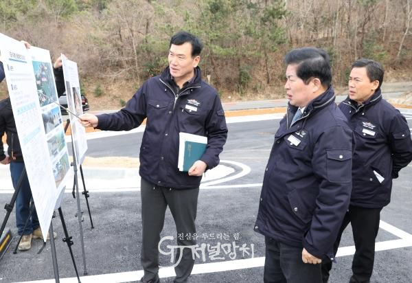 이날 현장을 찾은 공영민 군수는 사업 추진 과정과 공정률, 예산집행 현황, 공사 안전관리 상태 등을 세밀히 살피고 현장 관계자로부터 문제점과 건의사항 등을 청취했다.