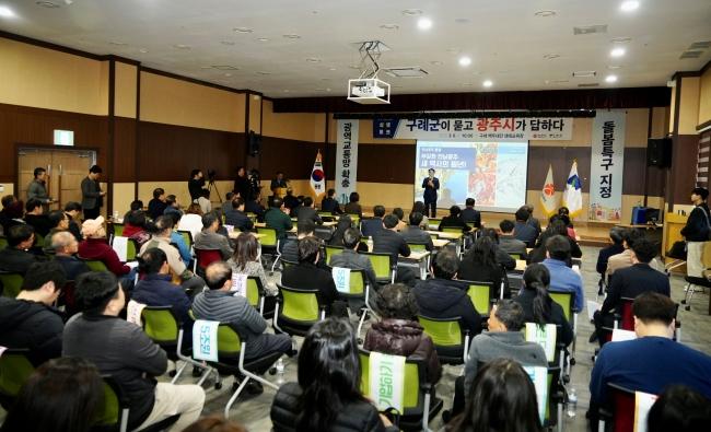 이날 행사에는 강기정 광주시장을 비롯해 오수미 구례군 부군수, 읍면 주민대표, 구례군민 등 120여 명이 참석해 광주전남 통합 추진에 대한 높은 관심을 보였다.
