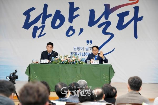 이번 행사는 광주시가 전남 시·군민들과 직접 소통하며 지역 발전 전략을 설명하기 위해 진행중인 상생토크의 하나로 마련됐다. 이날 행사에는 강기정 광주시장과 정철원 담양군수를 비롯해 담양군민 등 250여명이 참석했다.