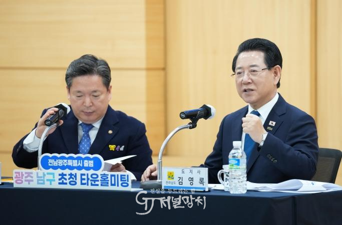 이날 남구 타운홀미팅 행사에는 김영록 전남도지사와 남구청장, 구의장과 구의원, 주민자치위원, 통장단, 시민·사회단체, 남구 시민 등 300여 명이 참석했다. 이번 타운홀미팅은 ‘전남광주통합특별시 설치를 위한 특별법’이 3월 5일 공포·제정된 이후 7월 1일 역사적인 출범을 앞두고 있어 그 의미를 더했다.