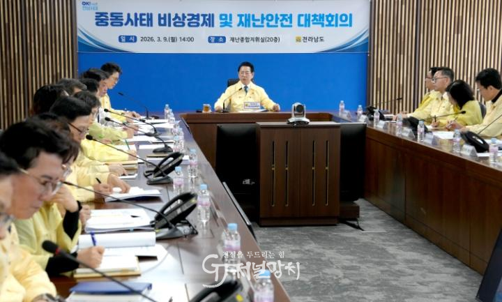 전남도는 9일 도청에서 김영록 전남지사 주재로 도-시군 합동 ‘중동사태 비상경제 및 재난안전 대책회의’를 열고 현재 경제상황을 점검하고 분야별 대응 방안 마련에 착수했다.