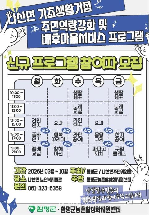 이번 프로그램은 나산면 기초생활거점 조성사업의 일환으로, 주민 삶의 질 향상과 지역 공동체 활성화를 위해 마련됐다.