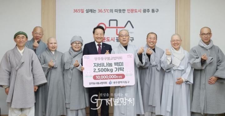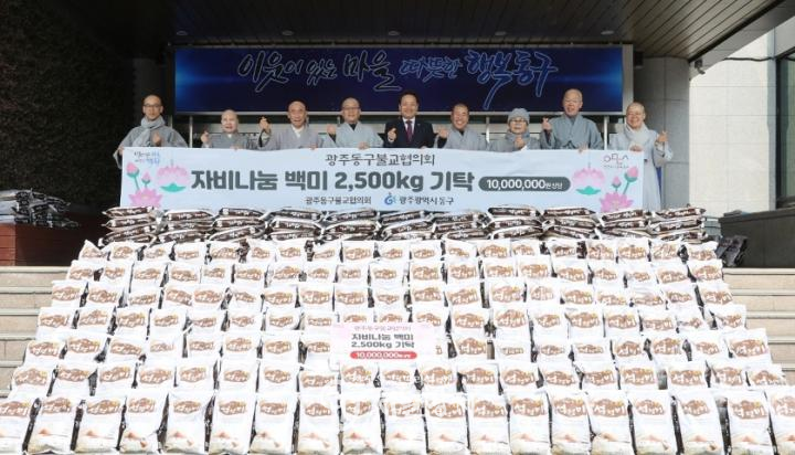 동구불교협의회는 지난 11일 구청에서 백미 전달식을 갖고, 지역 돌봄이웃을 위한 나눔을 실천했다. 이번 후원 물품인 백미 2,500kg(10kg 250포)는 동 행정복지센터를 통해 관내 복지시설에 전달될 예정이다.