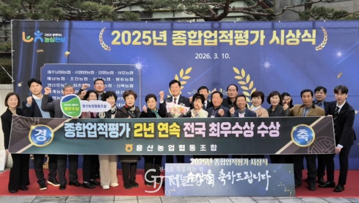 용산농협은 수익성 제고 및 리스크관리 강화로 내실있는 경영과 적극적인 사업추진으로 신용 및 경제사업 전 분야를 유기적으로 연계하여 시너지 창출을 극대화 하였으며, 조합원 환원사업 및 지역사회 공헌의 탁월한 성과를 거두면서 조합 최초로 종합업적평가에서 2년 연속 1위의 영예와 자산건전성 우수농협 선정으로 명실상부한 전국 최우수농협으로 자리매김하게 됐다.