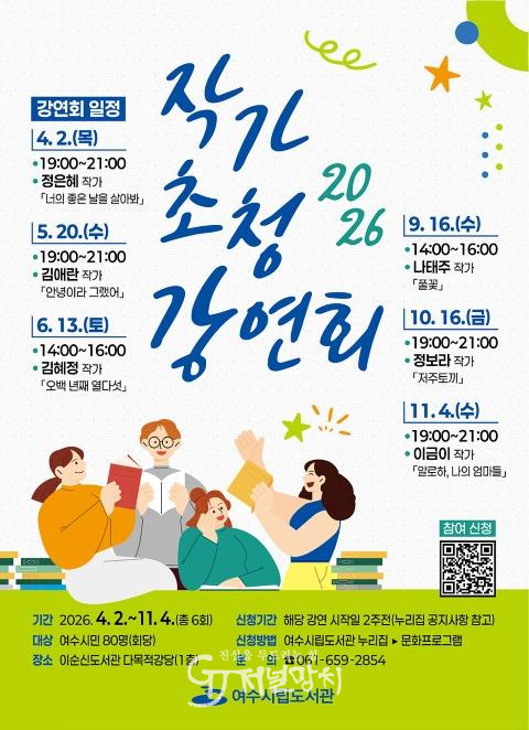 참여를 희망하는 시민은 여수시립도서관 누리집(yslib.yeosu.go.kr) 문화프로그램 코너에서 신청하면 되며 회차별로 80명을 선착순 모집한다.