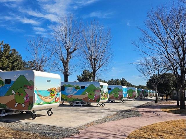 야영장은 카라반 10대를 포함해 총 100면 규모로 현재 66면 조성을 마쳤다. 나머지 34면은 오는 9월까지 추가 조성할 예정이다.