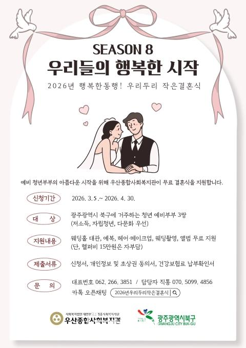 16일 북구에 따르면 다음 달 30일까지 ‘우리두리 작은 결혼식’ 참여자를 모집한다.