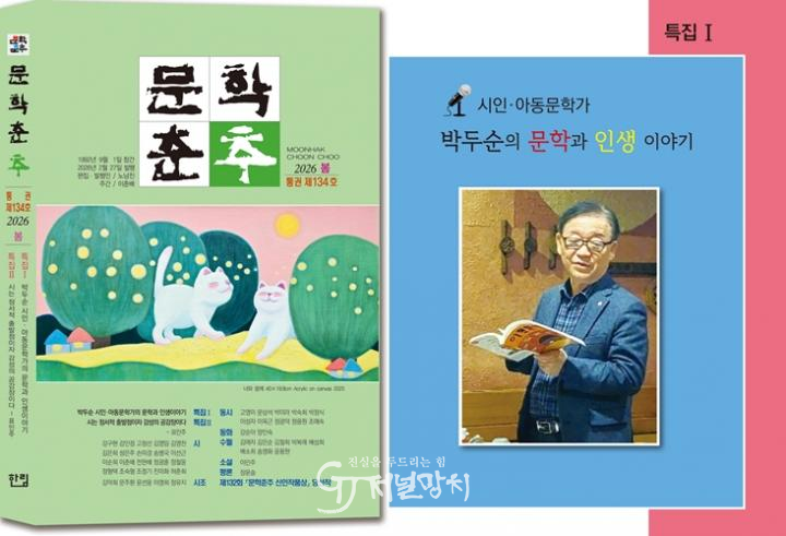 특집으로 한국 문단의 원로 시인이자 아동문학가인 박두순 시인의 「문학과 인생 이야기」를 통해 한 평생 문학을 향해 걸어온 삶의 여정을 조명한다. 산골 마을에서 자연과 더불어 자란 유년의 기억, 중학교 시절 도서실에서 빌린 책을 밤늦도록 읽다가 이불을 태운 일화, 그리고 문학을 위해 직장을 내려놓았던 결단까지 그의 삶과 문학이 어떻게 맞닿아 있는지를 깊이 있게 들여다 볼 수 있다..