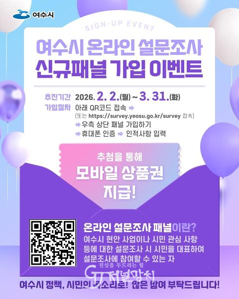 이벤트 기간은 오는 3월 31일까지이며 여수시민이면 누구나 가입 가능하다. 패널 가입은 이벤트 기간 이후에도 연중 가입할 수 있다.