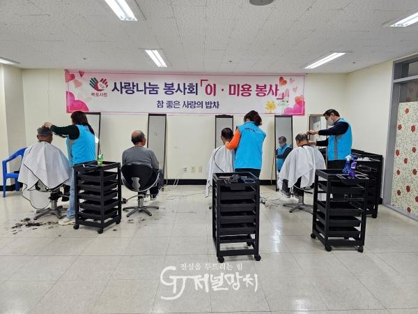 이날 봉사회 회원 10여 명은 목포복지재단의 ‘참! 좋은 사랑의 밥차’ 운영 일정과 연계해 어르신 100여 명에게 머리 커트와 스타일링 서비스를 제공했다.