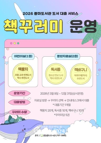 ‘맞춤형 책 꾸러미 서비스’에 대한 자세한 사항은 광양중마도서관(☎061-797-3880)으로 문의하면 된다.