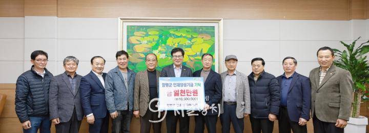 함평군은 19일 “함평군 정유생 회원 일동이 전날 군수실에서 인재양성기탁금 1천만원을 전달했다.”고 밝혔다.