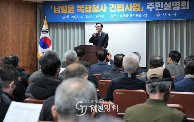 나주시는 지난 18일 남평읍 복지회관에서 ‘남평읍 복합청사 건립사업’ 주민설명회를 개최하고 사업 추진 경과와 향후 계획을 공유했다고 밝혔다.