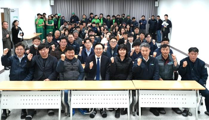 이날 나주시 관계자들은 나동훈 축산물공판장장의 안내로 주요 시설을 둘러본 뒤, 공판장 임직원과 입주업체 및 협력 기관 관계자들에게 감사의 뜻을 표했다.