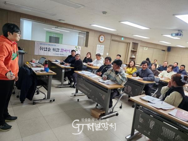 이번 교육은 외국인 근로자의 한국어 의사소통 능력을 향상시키고 지역사회 적응과 안정적인 근로 환경을 지원하기 위해 마련된 프로그램으로, 첫 수업에 외국인 근로자 26명이 참여해 높은 관심을 보였다. 수업 내용은 일상생활과 근로 현장에서 자주 사용하는 기초 한국어 중심으로 진행되어 실제 생활과 업무에 도움이 될 수 있도록 구성됐다. 외국인 근로자 대부분은 낮 시간 농업 및 사업장 근무로 인해 교육 참여가 어려워 저녁 시간대에 수업이 운영되고 있다. 이에 따라 교육 담당자는 야간 시간까지 수업을 진행해야 하는 어려움이 있지만, 외국인 근로자의 한국어 학습 기회 확대와 지역사회 적응 지원을 위해 교육을 지속적으로 운영하고 있다.