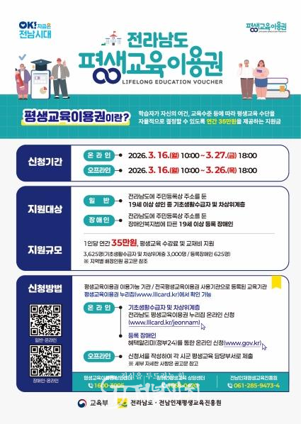 이용권 관련 자세한 문의는 평생교육 이용 상담센터(1600-3005)나 전남인재평생교육진흥원(061-285-9473~4)으로 하면 된다.