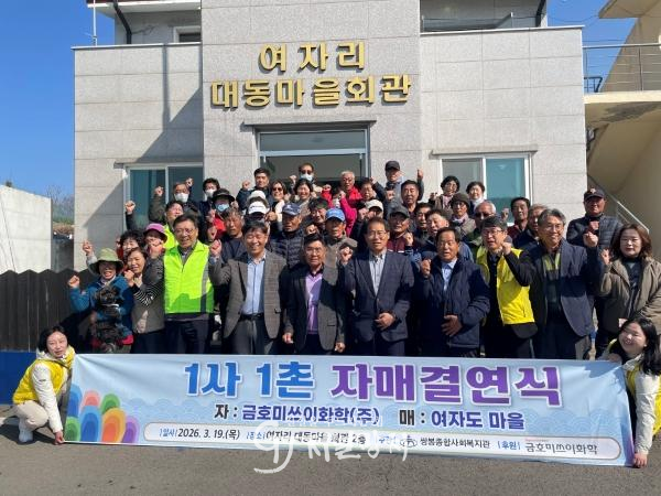 ![]() 여수시 화정면 여자도 대동마을과 금호미쓰이화학은 지난 19일 대동마을회관에서 1사 1촌 자매결연식을 개최했다. |
