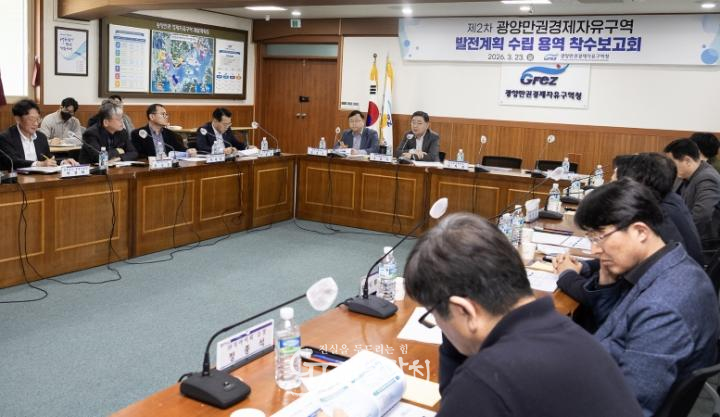 이날 보고회에는 광양경자청 임직원 외 전남도와 경남도, 여수·순천·광양시, 하동군 등 광양만권에 인접한 지자체 공무원들과 용역 수행기관인 와이비파트너스 관계자 등 20여 명이 참석하여 광양경자청 발전계획 수립에 대한 심도 있는 의견을 나눴다.