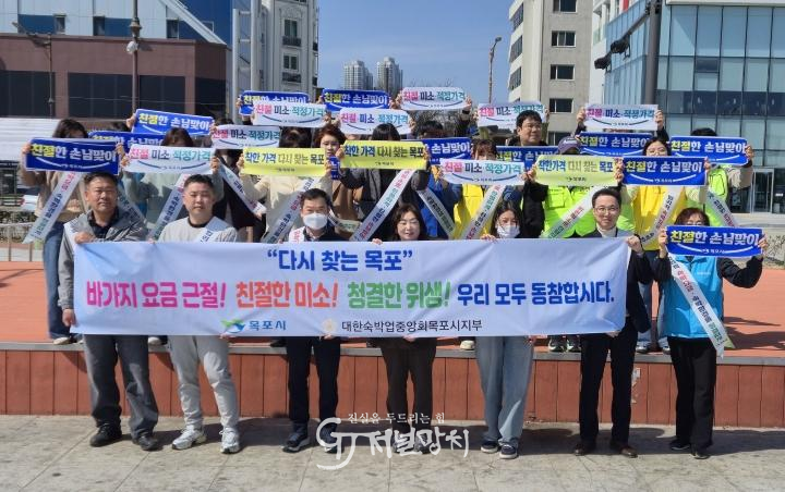 이날 행사에는 대한숙박업중앙회 목포시지부 회원과 숙박업 영업주, 목포시 공무원, 공중위생감시원 등 40여 명이 참여해 평화광장 일대에서 거리 캠페인을 진행했다.