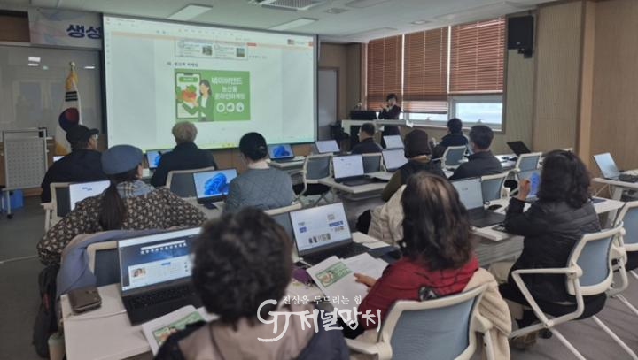 교육에 참여한 농업인들은 노트북과 스마트폰을 활용해 챗GPT, 제미나이 등 최신 AI도구를 통해 기획부터 홍보 콘텐츠 제작, 송출에 이르는 전 과정을 직접 수행하며 실질적인 디지털 활용 능력을 키웠다.