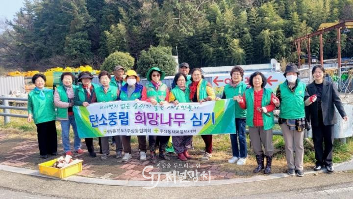 ![]() 주삼동 새마을회에서 월앙마을 인근에서 탄소중립 희망나무 심기를 추진했다. |