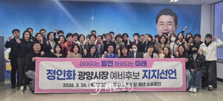 이날 선언문을 통해 “지금 광양은 아이를 안심하고 키우고, 청년이 머물며, 소상공인이 자립할 수 있는 도시로 도약해야 하는 중차대한 기로에 서 있다. 지난 성과를 바탕으로 광양의 변화를 완성할 적임자는 오직 정인화 예비후보 뿐”이라고 강조했다.