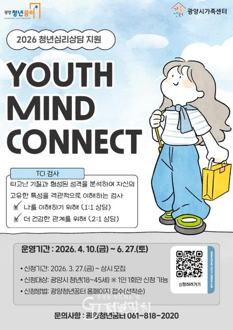 참여 대상은 광양시에 거주하는 18세부터 45세까지의 청년으로 누구나 신청할 수 있다. 광양시는 이번 사업을 통해 청년의 심리적 부담을 완화하고 또래 및 가족과의 관계 회복을 돕는 한편 지역 청년의 삶의 질 향상에 기여할 것으로 기대하고 있다.