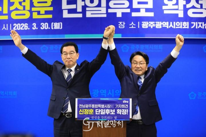 단일 후보가 된 신정훈 예비후보는 “강기정 시장의 결단은 단순한 양보가 아니다. 그 고결한 용기가 없었다면 우리는 오늘 전남광주가 하나 되어 비상하는 이 장엄한 설계도를 감히 그리지 못했을 것이다. 나의 영원한 동지 강기정, 그리고 신정훈. 이제 두 이름은 굳건한 약속 위에서 하나의 심장으로 뛸 것이다.”고 했다.