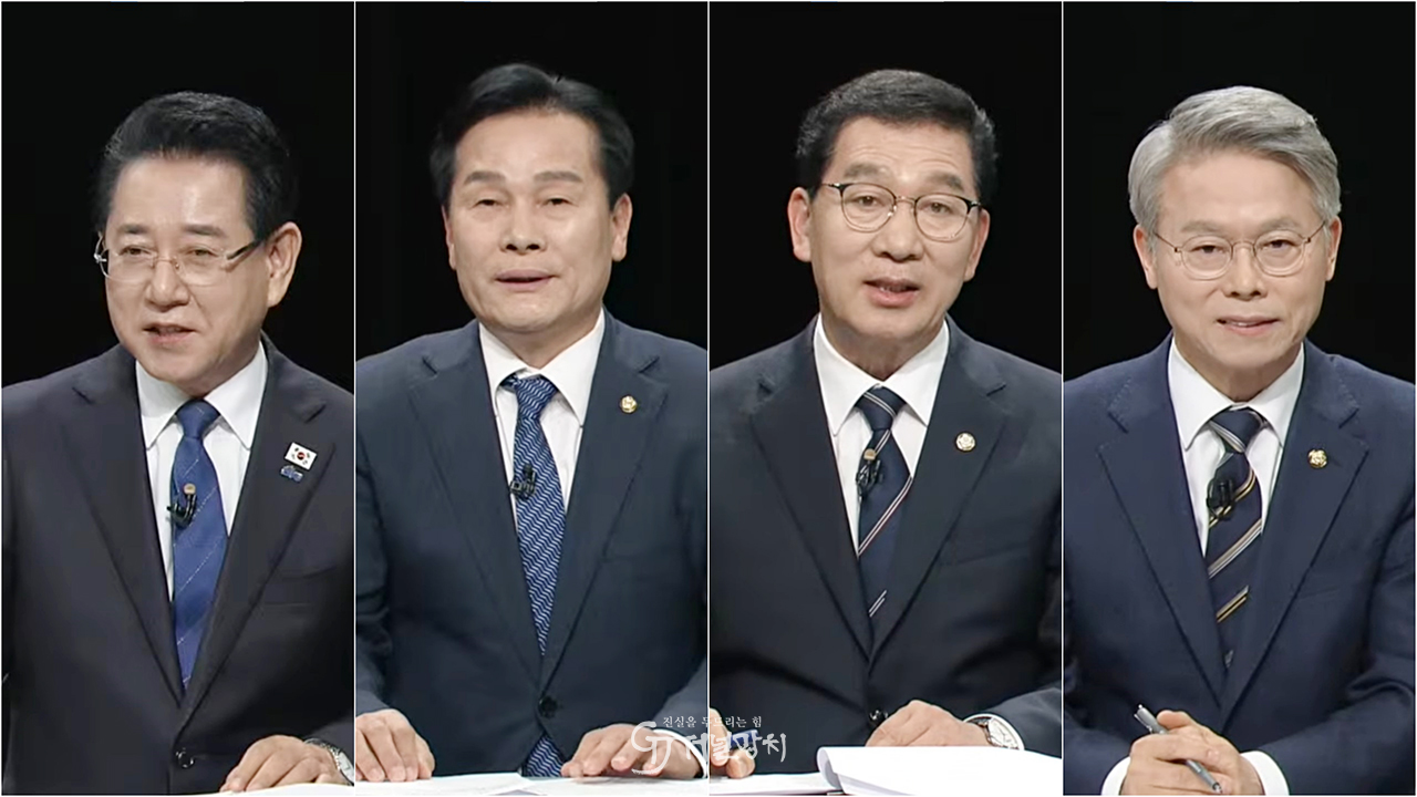 ![]() ▲ 전남광주특별시장 민주당 본경선 진출자 4인 (왼쪽부터 기호순으로 김영록, 주철현, 신정훈, 민형배 민주당 경선 후보.) |