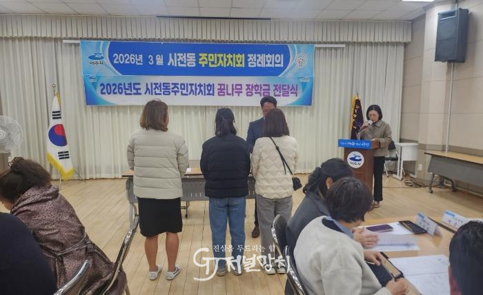 ![]() 시전동 주민자치회(회장 이영륜)는 지난 19일 월례회의에서 관내 저소득 가정 학생들을 위한 꿈나무 장학금 전달식을 개최했다. |