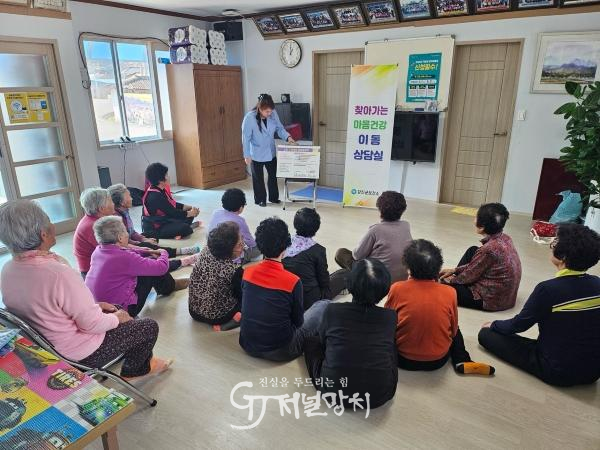 ![]() 정신건강복지센터 직원이 자살예방교육 및 정신건강증진교육을 하고 있다. |
