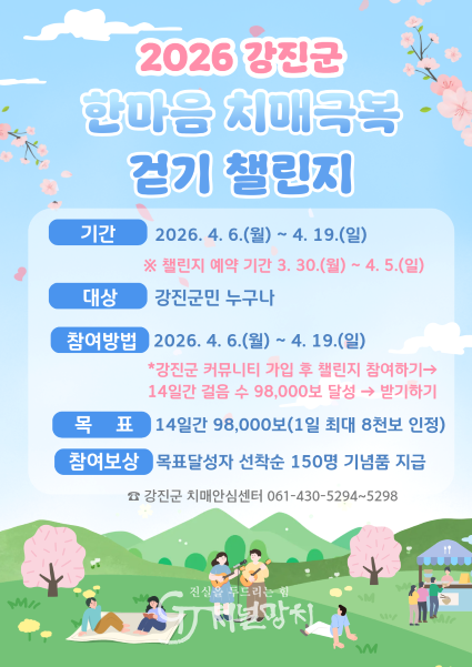 챌린지 참여와 관련한 자세한 사항은 강진군치매안심센터(061-430-5293~5298)으로 문의하면 안내받을 수 있다.