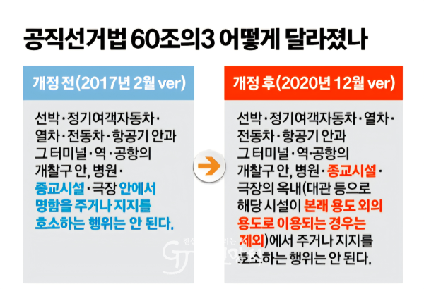 강 예비후보 측은 “공직선거법 제60조의3은 종교시설 내 선거운동을 제한하면서도, 대관 등 본래 용도 외로 이용되는 경우는 예외로 규정하고 있다.”며 “문제의 공간은 외부 단체가 임대해 사용하는 곳으로, 법적으로 종교시설 선거운동에 해당하지 않는다.”고 밝혔다.
