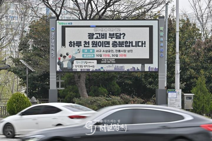 서구는 4월부터 관내 전자게시대 2곳(선한병원 인근 기 설치, 농성역 1번 출구 인근 4월 중 설치 예정)를 활용해 ‘천원 광고’를 본격 시행한다.