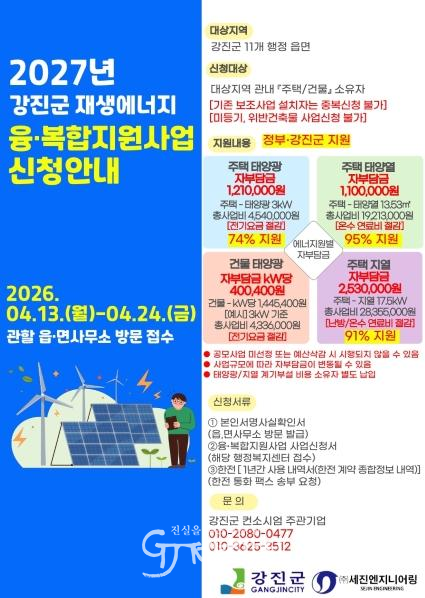 ![]() 2027년 강진군 신재생에너지 융복합지원사업 수요조사 안내문 |