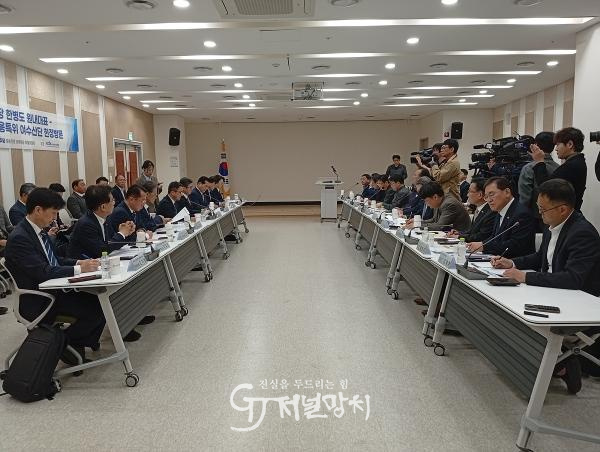 한편, 이날 간담회에는 더불어민주당 한병도 원내대표와 유동수 특위 위원장을 비롯한 당 지도부, 산업부 기획조정실장, 전남도 경제부지사, 지역 석유화학 기업 관계자들이 참석해 위기 극복 방안을 심도 있게 논의했다.